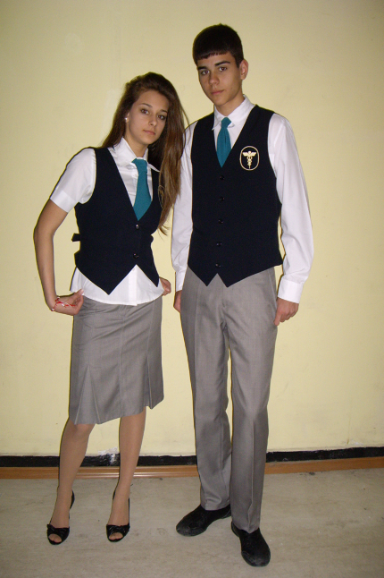 Училищната униформа се състои от риза с къс/дълъг ръкав, вратовръзка, яке и панталон/пола в тъмносин цвят. Носенето й е задължително в учебни дни. По-долу са представени актуалният и предходният модел на униформата, носени от нашите възпитаници.