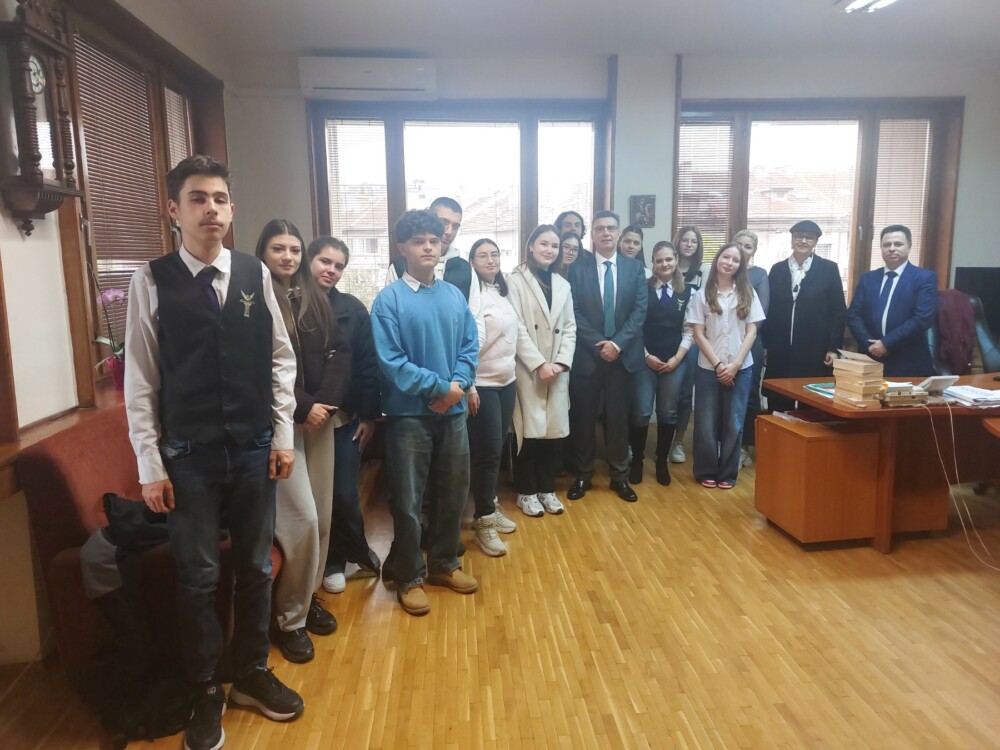 На 22.04.2026 ученици на  Търговската гимназия бяха на посещение в Окръжна прокуратура Бургас. Срещата се проведе в кабинета на окръжен прокурор г-н Георги Чинев с участието и на прокурор Христо Колев – говорител на институцията. На учениците бяха представени дейността на прокуратурата като структура, организация на конкретната дейност, връзката със съдебната система, както и видът на делата, по които прокуратурата работи. Диалогът беше поддържан с взаимен интерес  през зададени въпроси от страна на участниците –  ученици и  прокурори. С обещание за нови срещи с институцията на Прокуратурата и  през снимки с тога на прокурор учениците развълнувано разгледаха и сградата на Съдебната палата. Срещата е организирана от г-жа Албена Вълкова и проведена със съдействието на г-жа Мина Стаматова.